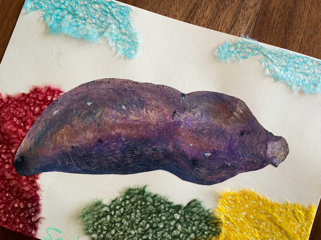 本日、楽しんでいただいたのは、さつまいもの量感画。