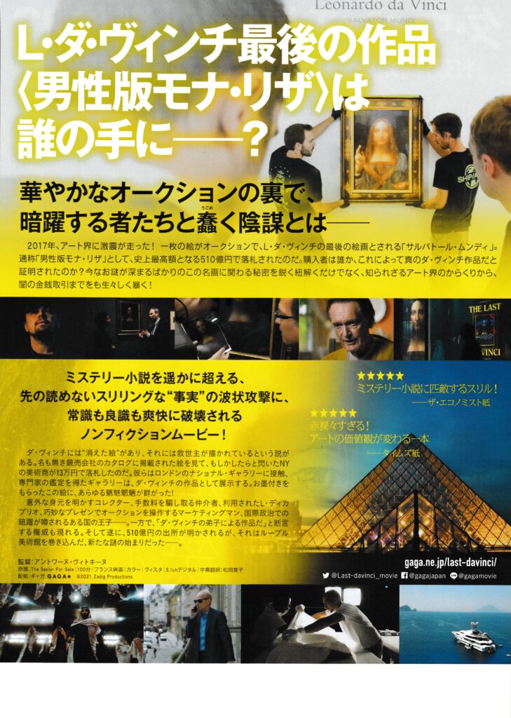 そして、本日はといえば、ノンフィクション映画「ダ・ヴィンチは誰に微笑む」を観てきました。