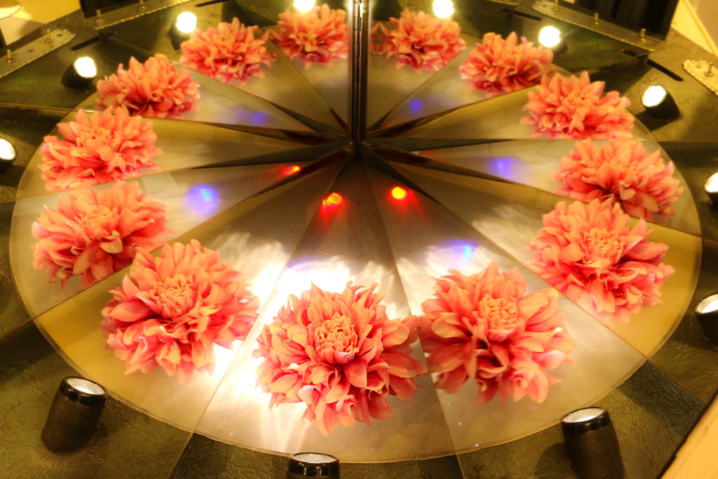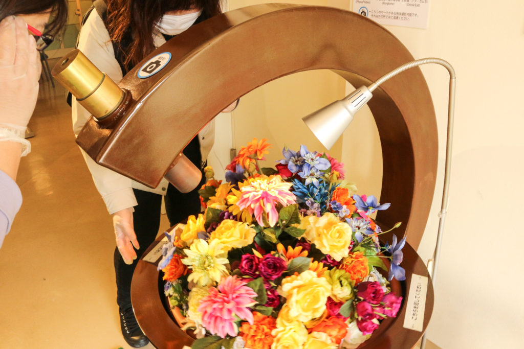 お花が飾られた台を回しながら覗くととっても綺麗!早速心を掴まれます。