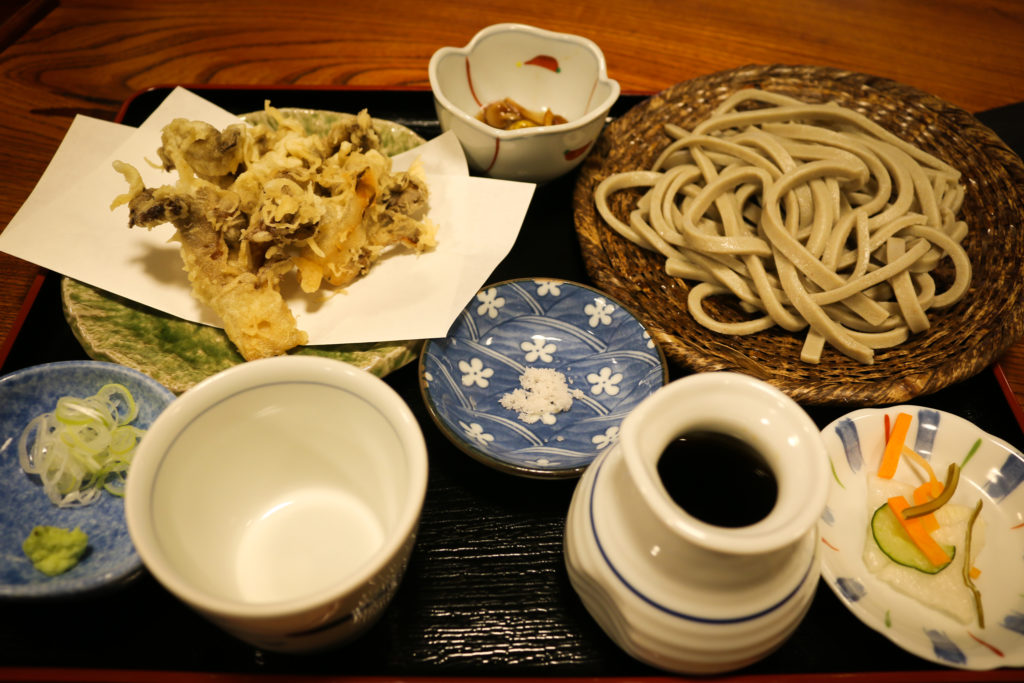 でも、ここに来なければ食べられない天然舞茸の天ぷらとお蕎麦。