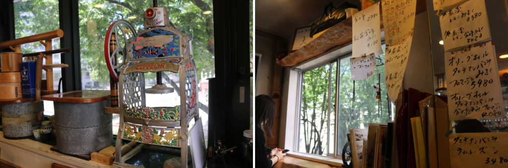 店内の材木は、テーブルをはじめ、ご主人が自ら加工したものとのこと。