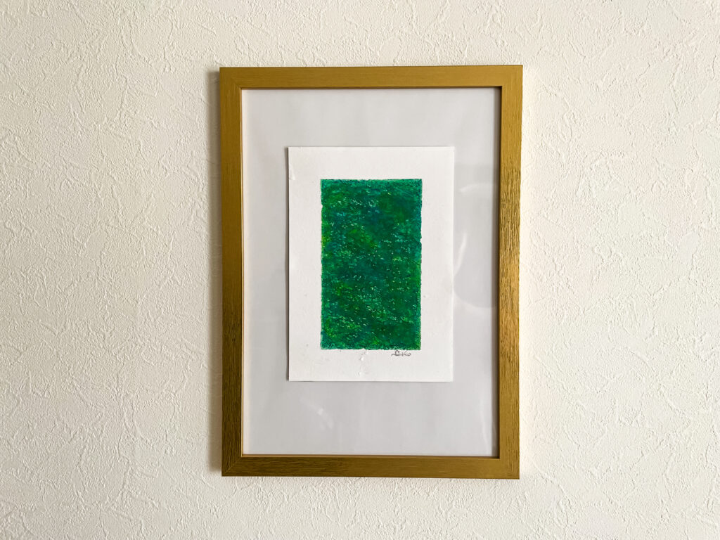 さて、できた作品はというと、マスキングテープによって綺麗に枠ができているため、額装せずそのまま飾っても絵になります。