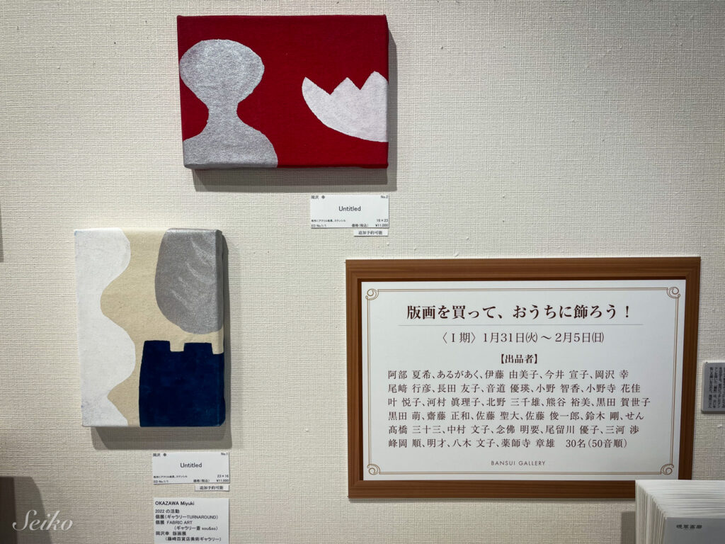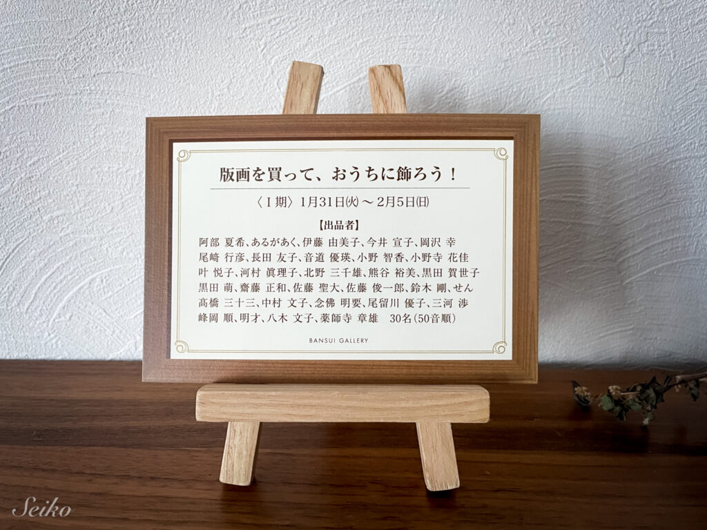 版画を買って、お家に飾ろう!」展は、晩翠画廊さんで2020年から定期的に開催されている、仙台・東北にゆかりある版画作家さんによる作品展で、様々な作家さんによる作品を見ることができ、個展とはまた違った楽しさを感じられる展示会です。