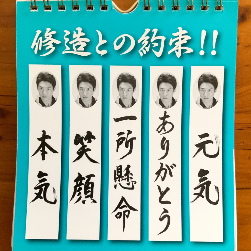 私は、基本的には、この「修造との約束!!」ページを出して飾っていて、ふと元気がなくなりかけた時などには、パラパラとめくって笑っています。