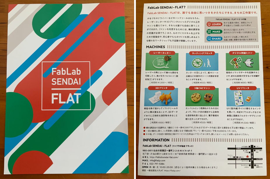 FabLab SENDAI-FLAT(ファブラボ仙台 フラット)は、宮城県仙台市の一番町にあるファブ施設です。