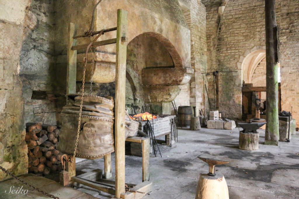 ブルゴーニュ観光の1日目に訪れた、世界遺産「ブルゴーニュのブドウ畑のクリマ(The Climats, terroirs of Burgundy/Les Climats du vignoble de Bourgogne)」の構成資産地域内にある「シャトー・デュ・クロ・ド・ヴージョ(Château du Clos de Vougeot)」もシトー会によるもので、そちらはワインが修道院の財源でしたが(https://calm-smile-chain.com/climats-burgundy/)、ここフォントネー修道院では、近隣で採れる鉱物を用いた冶金業が重要な財源だったのだそう。
