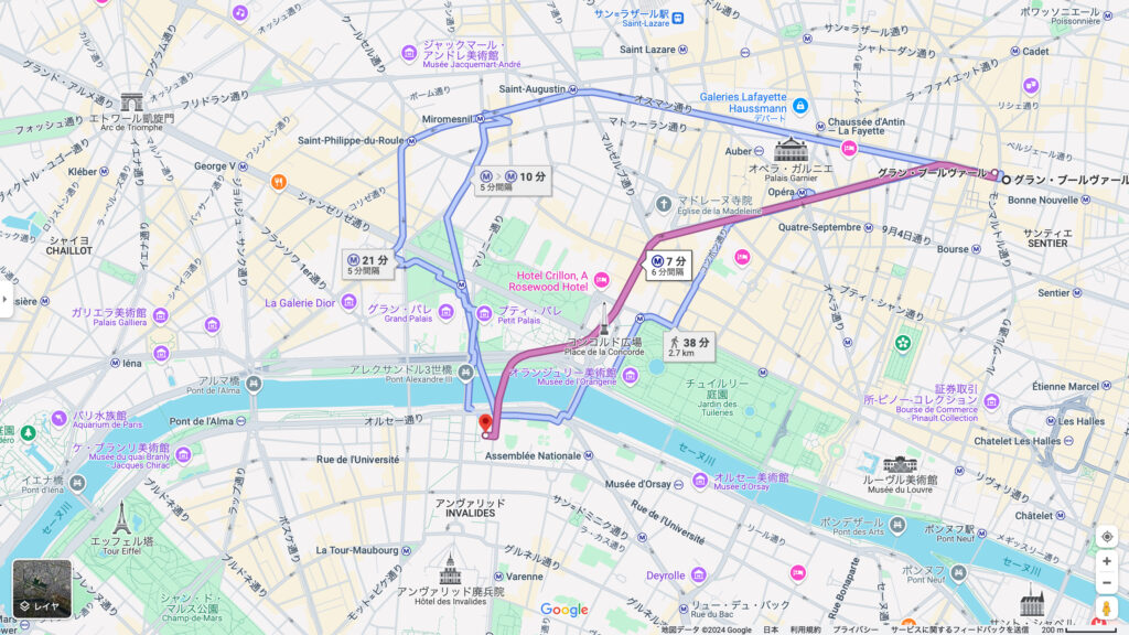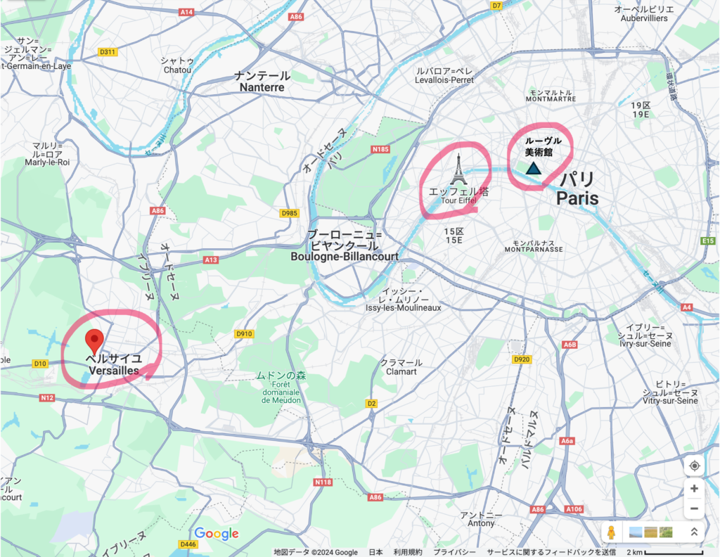 翌日の朝には帰路に就くことになるので、実質フランスでの滞在最終日となる日です。 この日の目的地はヴェルサイユ宮殿(Palais de Versailles)とルーヴル美術館(Musée du Louvre)。 そしてその移動経路として、エッフェル塔(La tour Eiffel)界隈を歩くことを決めていました。
